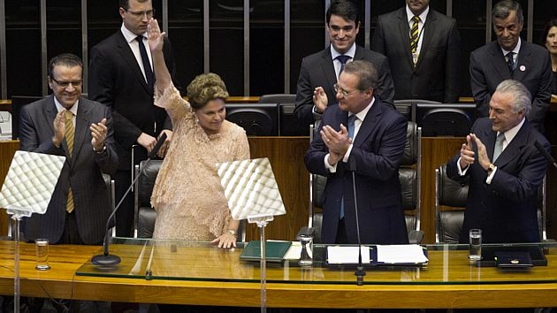 No momento da solenidade em AL, senador empossava a presidente Dilma